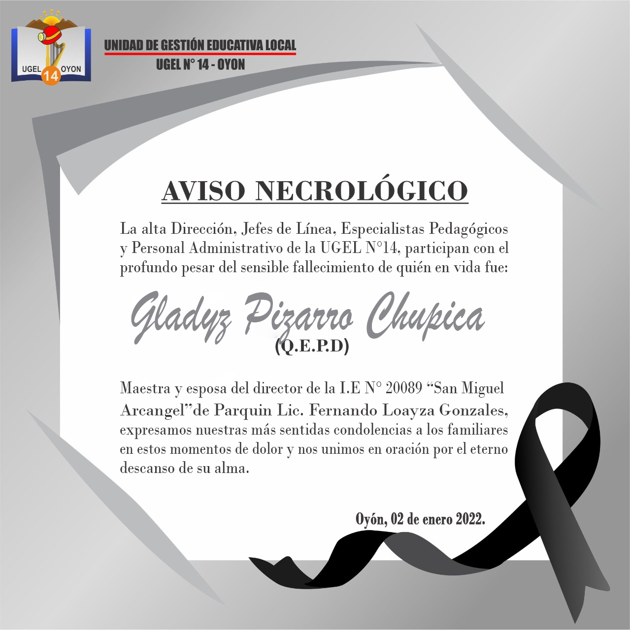 expresamos nuestras más sentidas condolencias a los familiares